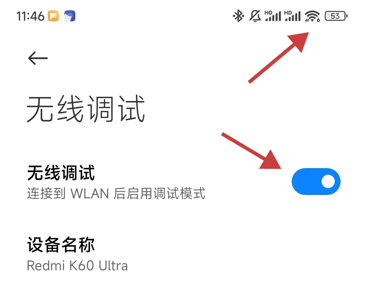 打開wifi與無線調試
