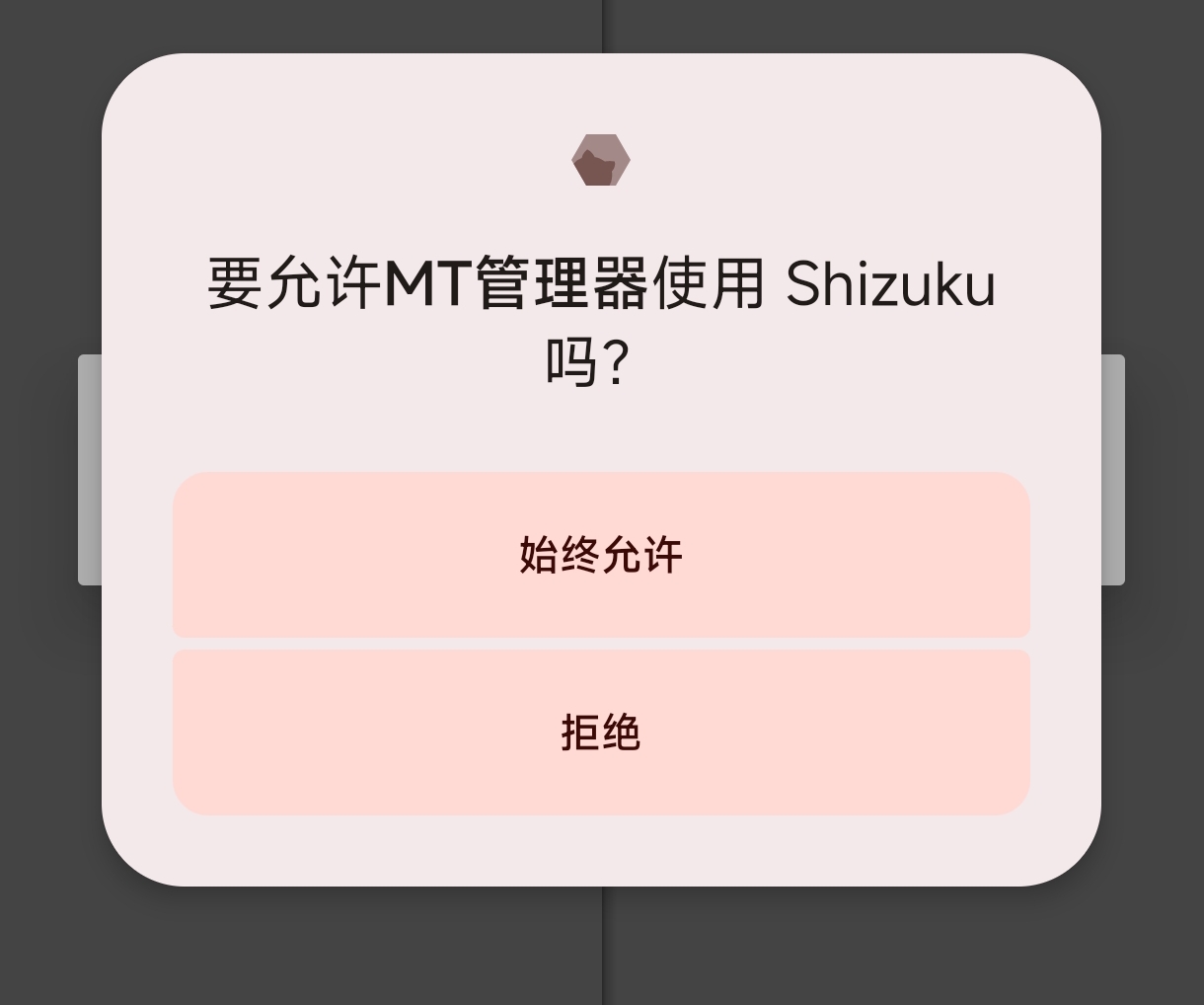 4.返回shizuku應用啓動,一段加載後啓動成功,隨後打開準備好的mt管理器,跳出來的彈窗點擊始終允許