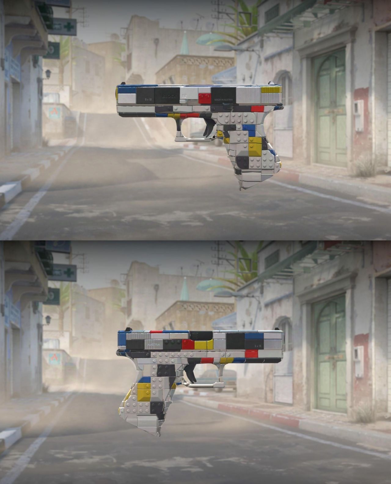 槍管上繪製了粉色等距圖案,扳機前準星處以亮藍色噴塗,設計很新穎,價格很便宜。磨損影響圖案完整性,推薦略磨。