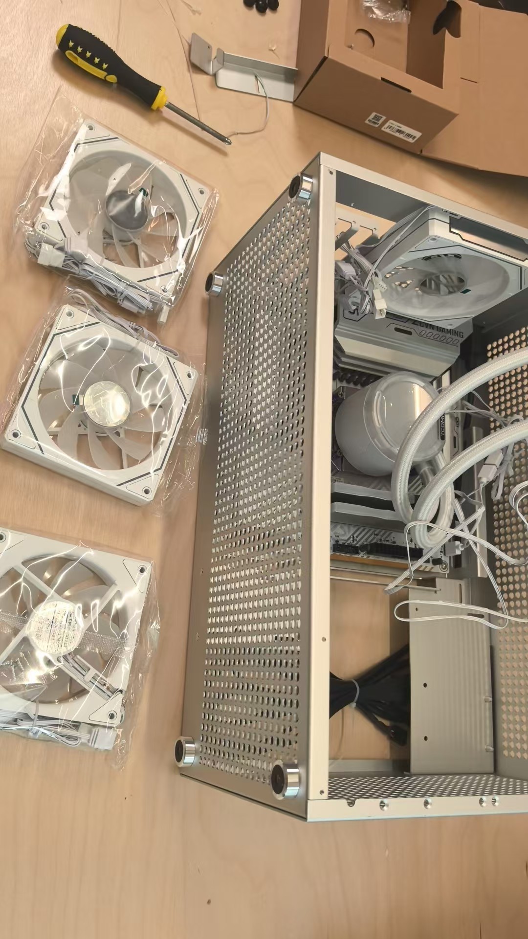 另外也沒預判好顯卡的厚度,準備了頂部水冷+下3後1的散熱風扇配置。