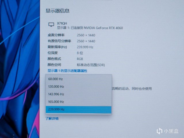 ▲接上顯示器後,記得在系統菜單中進行設置,從此開啓高刷的暢快體驗吧!