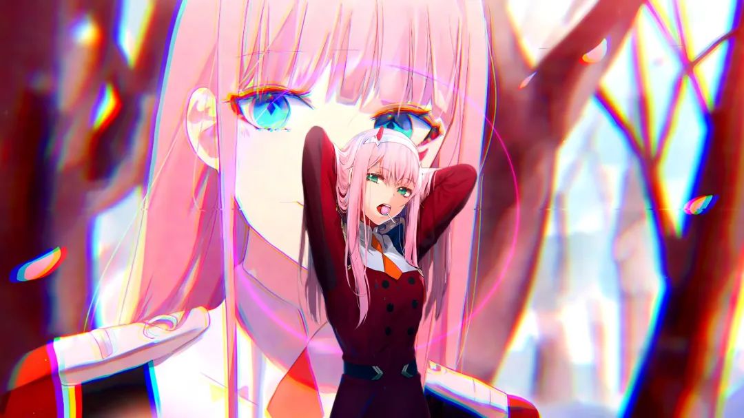 陽光透過粉色的髮絲灑落,照亮了女孩微笑的臉龐
