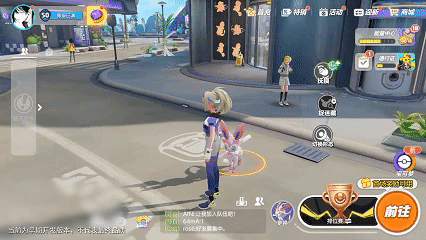 一进入游戏,一座可以随便逛的主城就摆到了玩家面前。玩家可以在主城里把自己最爱的宝可梦放出来逛逛街、摸摸头;找个角落和朋友打开语音聊天,互相晒一晒自己刚买的电子服(相当于其他游戏里的皮肤);又或者是玩一玩路边的投篮机,和充满宝可梦要素的街边道具来些互动。