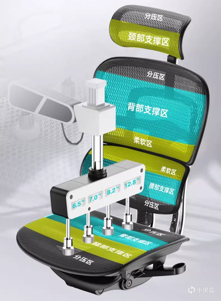 身体不同部位给椅子的压力是不同的,为了均匀承托不同坐姿和久坐带来的压力,故部分工学椅会通过调节垫面/椅背网面不同区域的弹力大小,以求提供更好的支撑。
