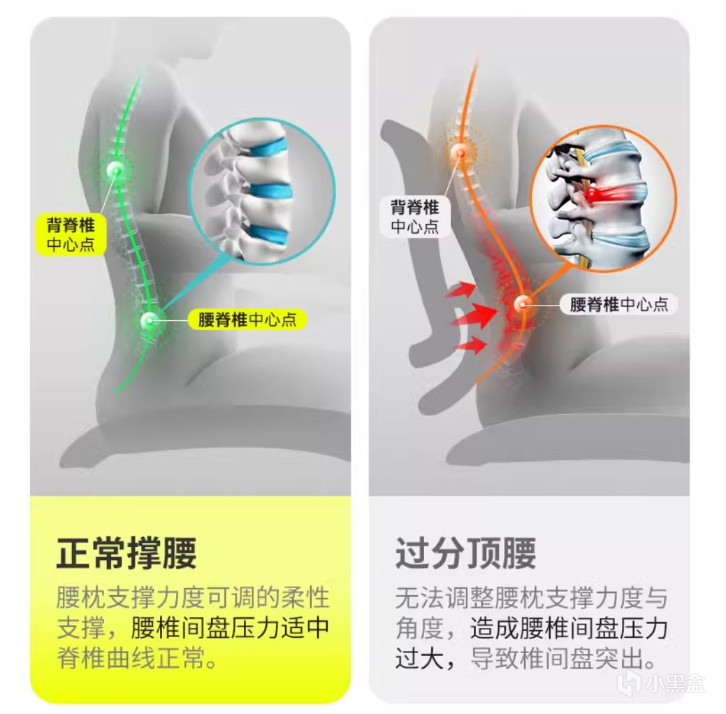 当然,分体式椅背有个很重要的一点就是椅背下部分的“腰托(腰枕)”需要能给到一个比较合理的支撑。