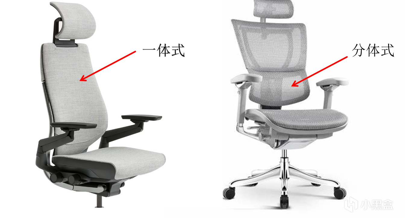 目前主流人体工学椅椅背有“一体式单背”和“分体式双背”两种设计(甚至还有“三背”设计)。
