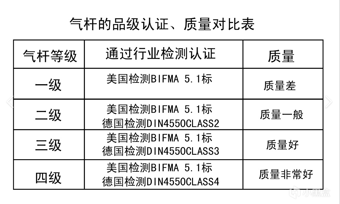 3/4级气压棒基本上都通过了SGS、TUV、BIFMA认证,在管壁与内芯厚度以及旋转冲击检测中有硬性通过要求。