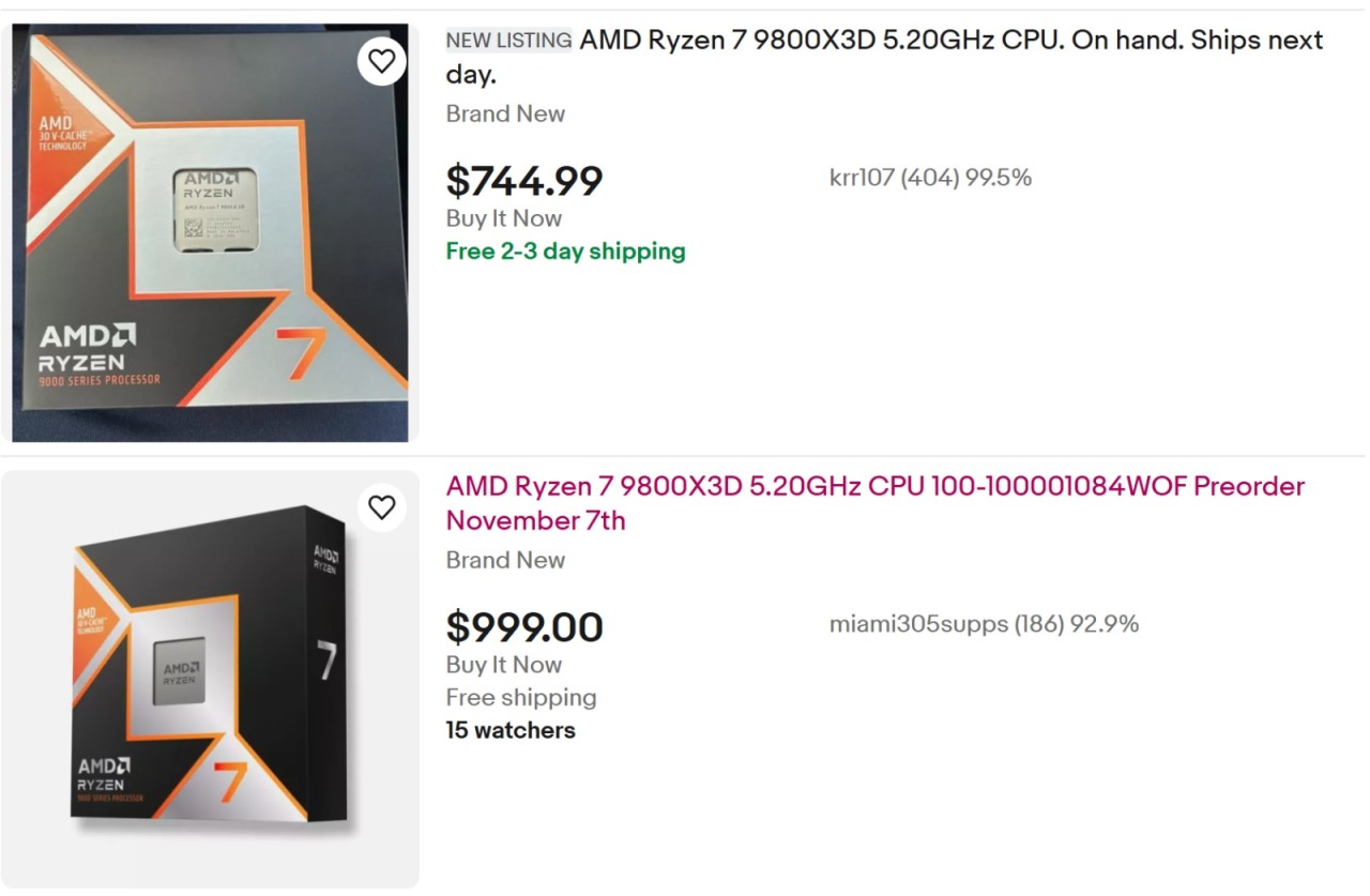 外媒報道稱,在亞馬遜和新蛋,銳龍7 9800X3D都已售罄。儘管是479美元的首發價格,但還是擋不住消費者們的搶購熱情。目前的情況是需求太火,以至於黃牛們可能已經加入了戰場。在其他平臺,銳龍7 9800X3D的價格已經飆到了1000美元。