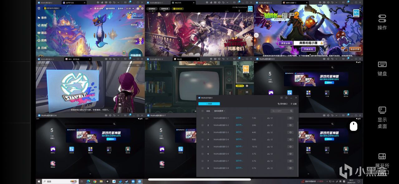 在MuMu直控模式下,会显示多个多开管理的窗口,这是基于你mumu多开器里的模拟器数量。