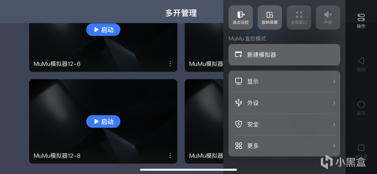 可以看到,此时界面会有多开管理的窗口,右侧操作会显示是MuMu直控模式,还有新建模拟器的选项