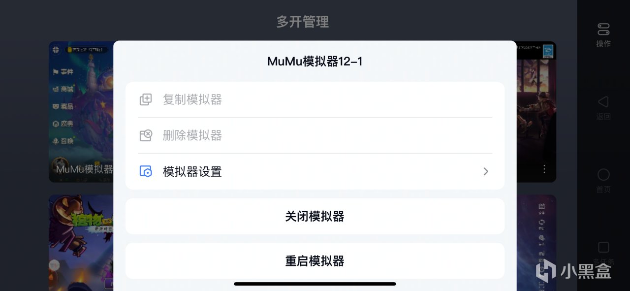 ①【多任务】:变为mumu模拟器的后台运行程序列表