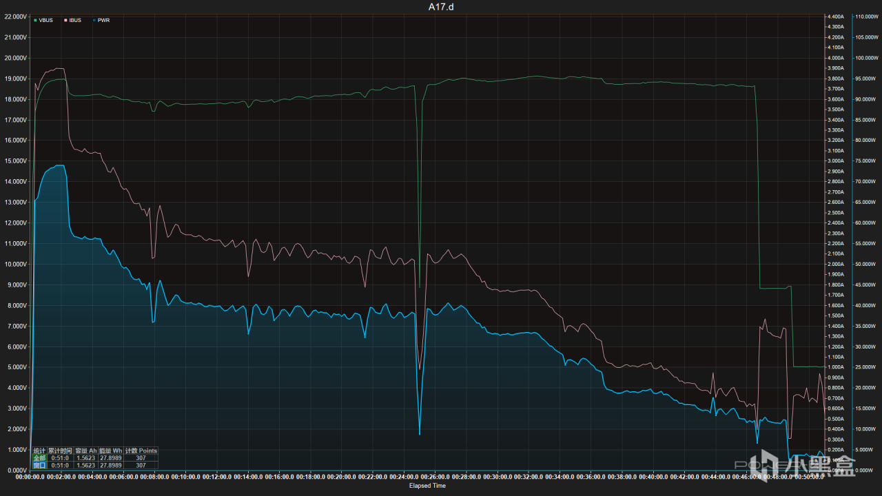 47分鐘UI滿電,51分鐘功率歸零