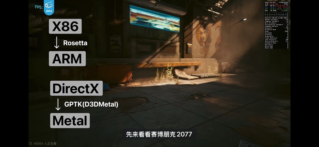 在极客湾最新的M4芯片测试视频里,MAC居然拿出了还不错的游戏表现,哪怕没有原生支持,只能转译,还是达到了“可玩”的程度。