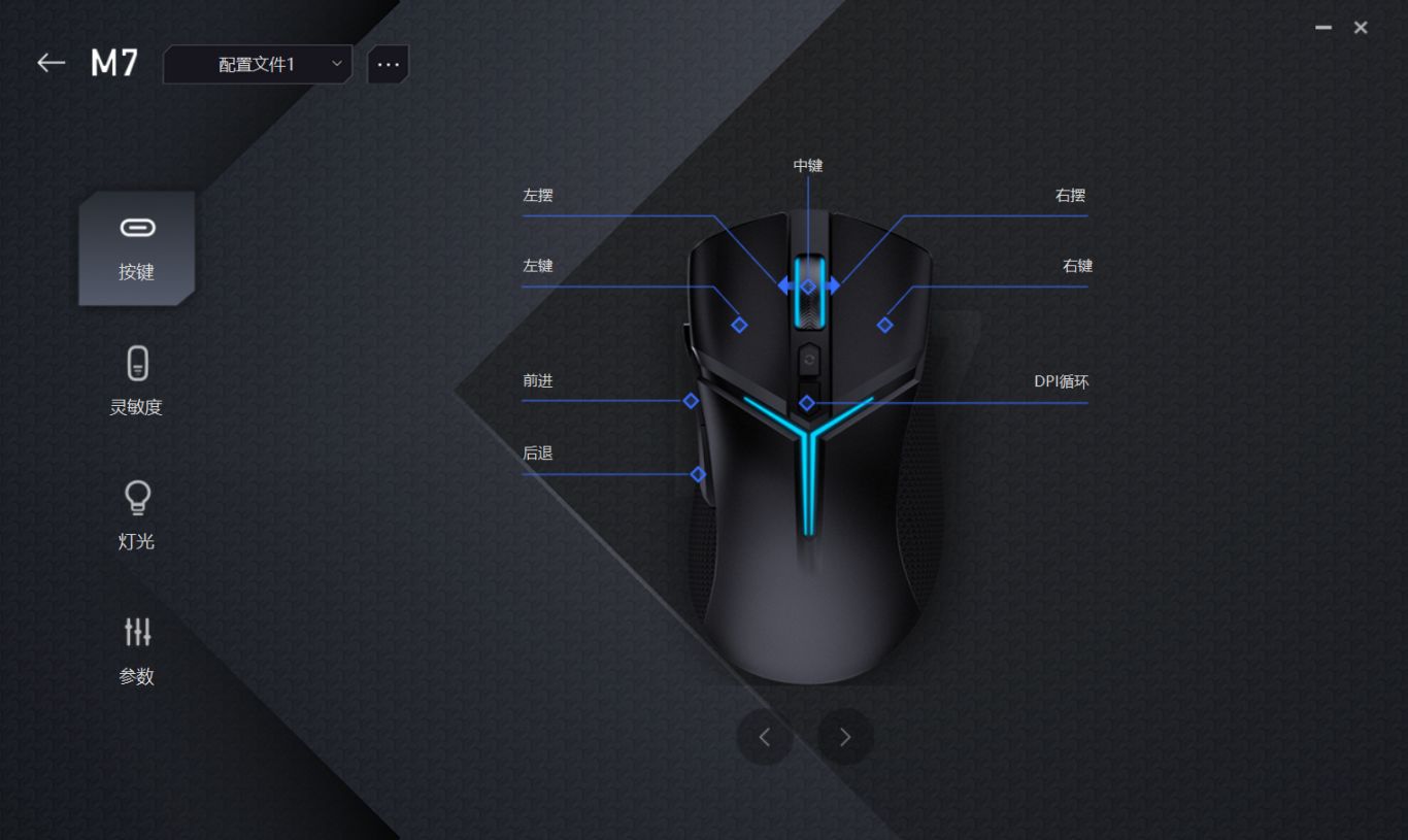 滚轮是无极滚轮,就是罗技G502和G903的那种4方向滚轮,上下左右都能转动。
