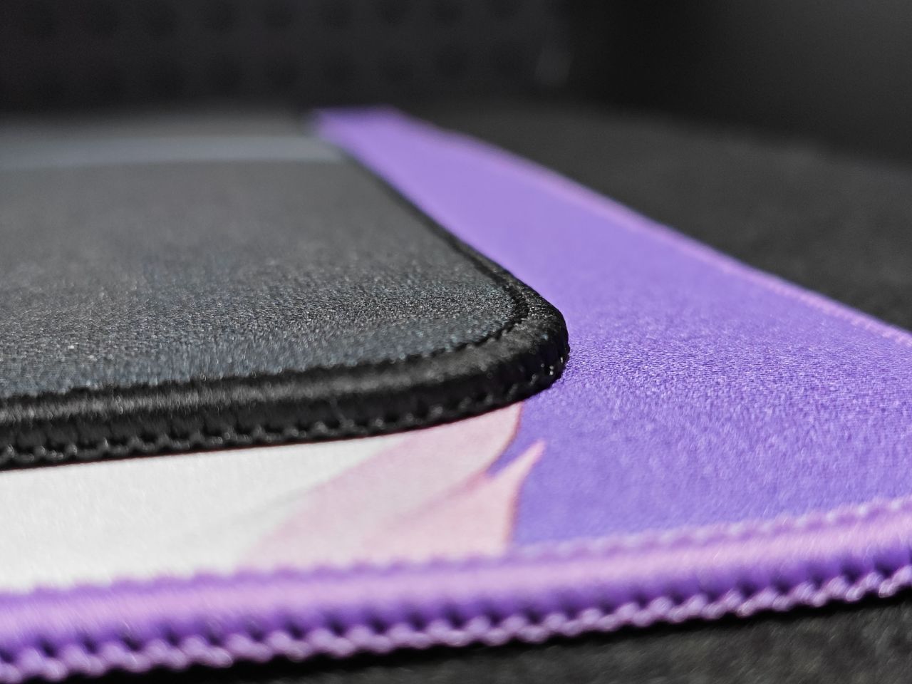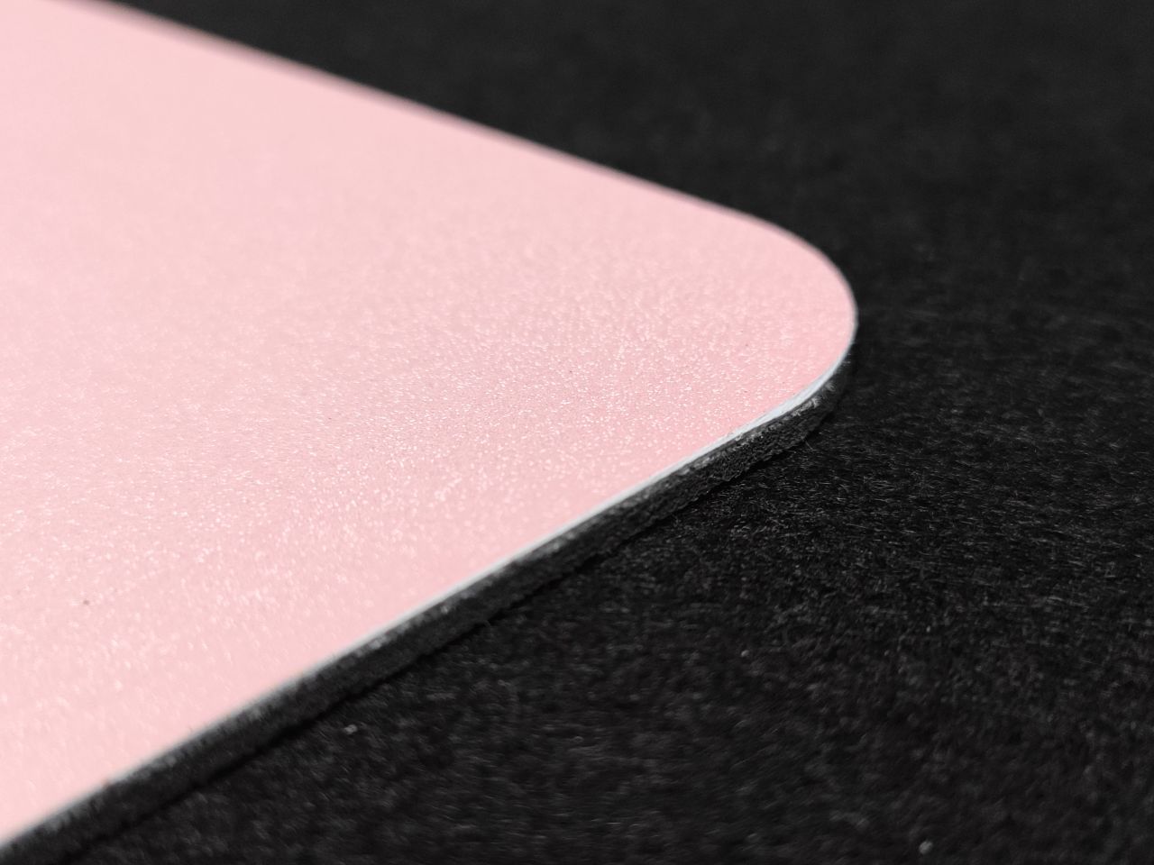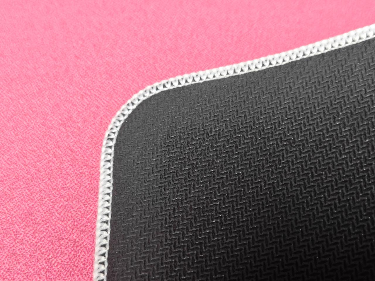 這是一款顏值極高的鼠標墊,鼠標墊表面微微粗糙,看上去有明顯的顆粒感。且布面抗汗防潮,手汗玩家及南方小夥伴有福氣了!它的包邊極窄並略低於表面,不會有刮手的感覺。