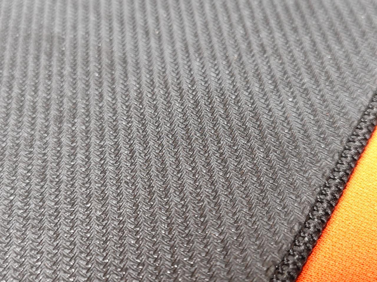 這款鼠標墊相信不用過多介紹,畢竟職業哥很多都在用,熾的表面摸上去會有微微的絨感,親膚性很好。高密度的橡膠底防滑性能非常出色,大面積拉槍也不會移位。