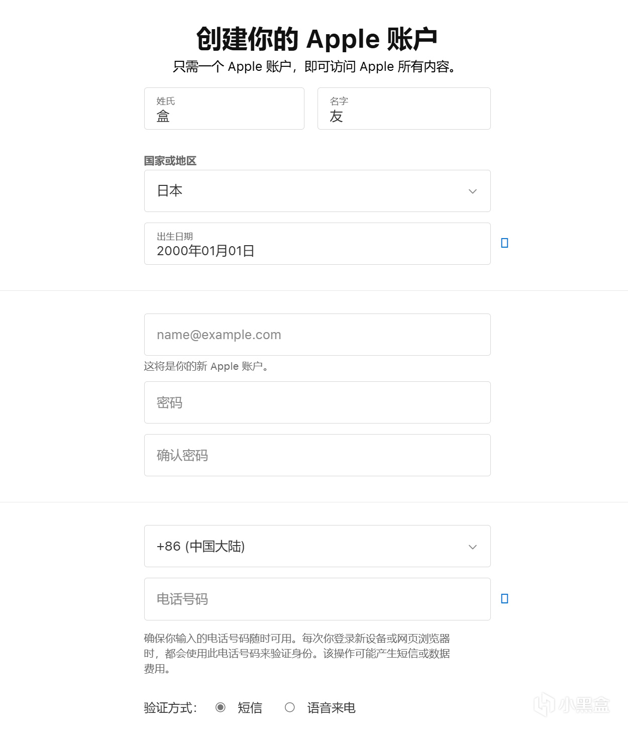 第二步:名字随意,地区选日本,手机号填写国内的就行,邮箱尽量不要用QQ邮箱,选163或者其他都可以,我就是QQ邮箱后续在使用礼品卡之后账号被限制了,非常难受。。