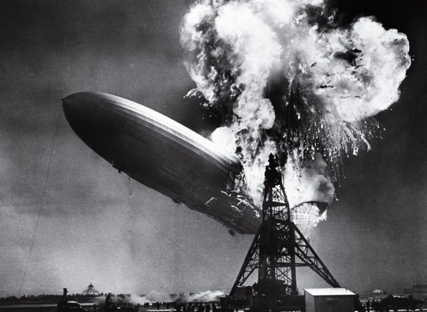 1930年,R101飛艇載着48名乘客及船員,包括湯姆森勳爵前往印度“上任”。在行至法國時飛艇開始喪失高度,當天夜裏,博偉市的市民被飛艇的發動機聲驚醒,他們紛紛跑出室外觀看,R101點亮所有燈光,如同巨大的浮空城堡在夜空緩緩滑過。但當時飛艇的高度已經太低了,僅有500英尺。可怕的事情也隨之降臨,飛艇前部的外蒙皮被強風撕破,氫氣從兩個氣囊裏衝出。艇首很快向下傾斜,飛艇向地面扎過去,伴隨着一聲可怕的撞擊,飛艇撞到了小山頂部,隨即發生了大火,整艘飛艇瞬間就變成一團巨大的火球。