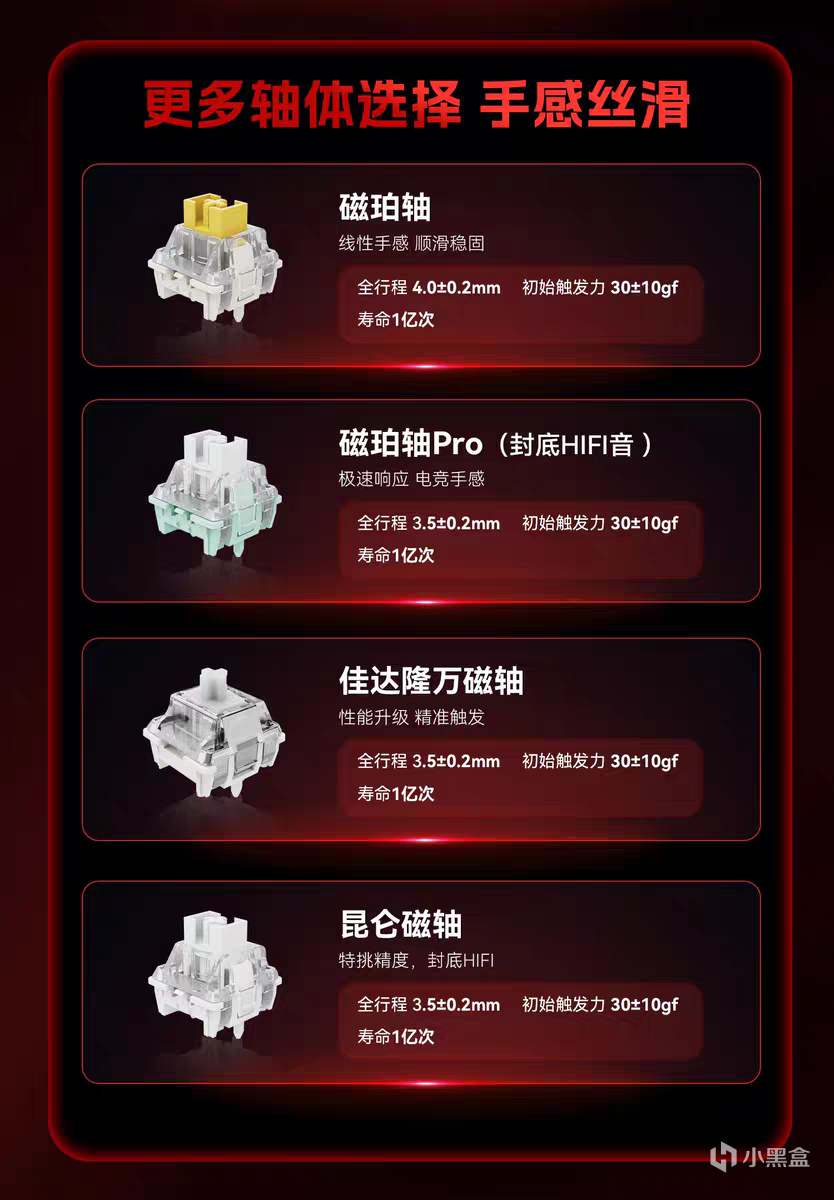 這兩把鍵盤的軸體略有區別,體感上萬磁軸比磁珀軸手感更好。紙面信息如下