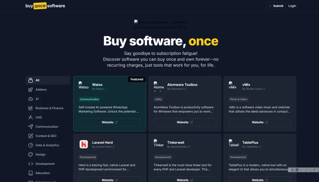 一款集合了只需单次付费即可终身使用的软件列表平台,适合不喜欢订阅模式或不想支付的用户,平台提供了多种类型,软件广泛,涵盖了日常用到的各类工具,总能找到适合自己需求。