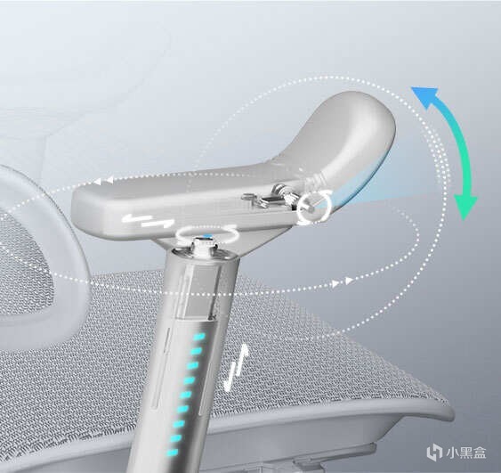 扶手的可調節性就豐富多了,市面上從2D到8D都有,可以進行上下、前後、內外、旋轉、仰角等角度的調節,對小臂、肘關節起到良好的支撐效果,還能在一些特定場景中增加舒適性,比如單手刷手機、雙手打遊戲時,將扶手的前段抬起就能很好的支撐小臂,長時間使用也不會感到疲勞。