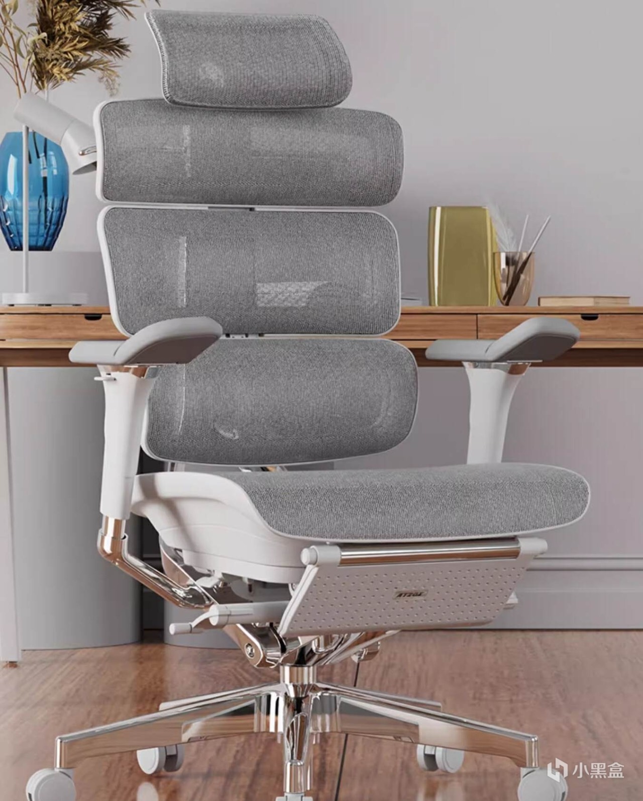 我選的保友金豪e 2代是銀白美國網+躺舒寶的版本,淺灰色框架+灰白色網布+亮面金屬骨架,高級感直接拉滿,穩穩拿捏了我這枚理工男的審美。而且,這種淺色調的高級灰配色方案可以百搭不同的裝修風格,不論放在家裏還是辦公室都不會顯得突兀。
