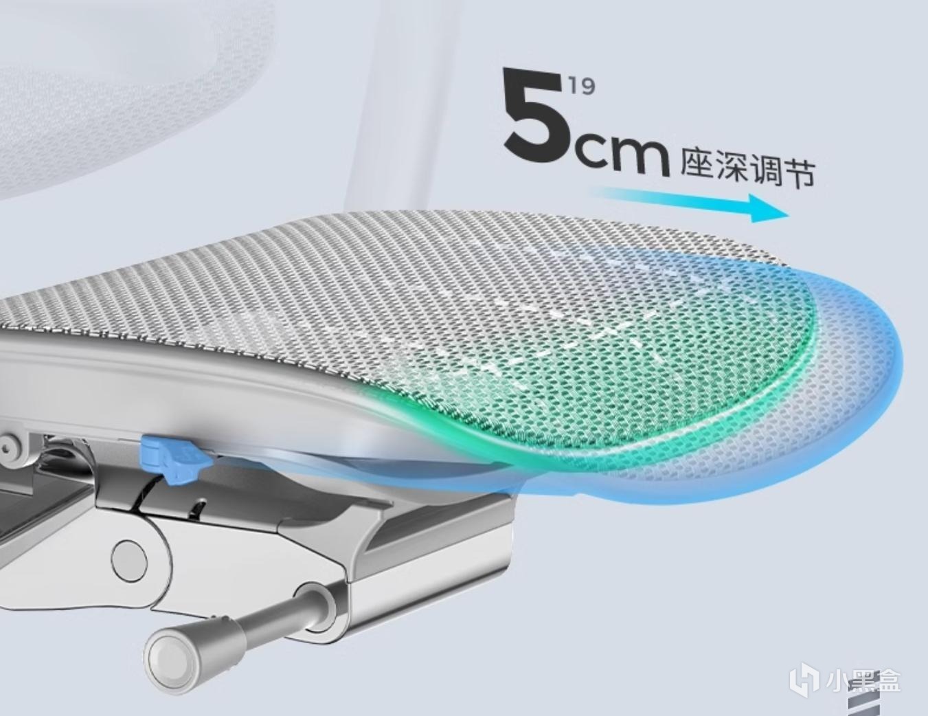 ⑥座深是五把椅子中最深的,並支持5cm調節。