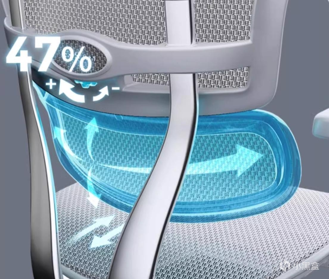 ①動態海浪式椅背,可以根據腰椎的活動變化動態調整椅背貼合身體。