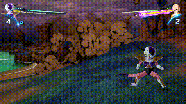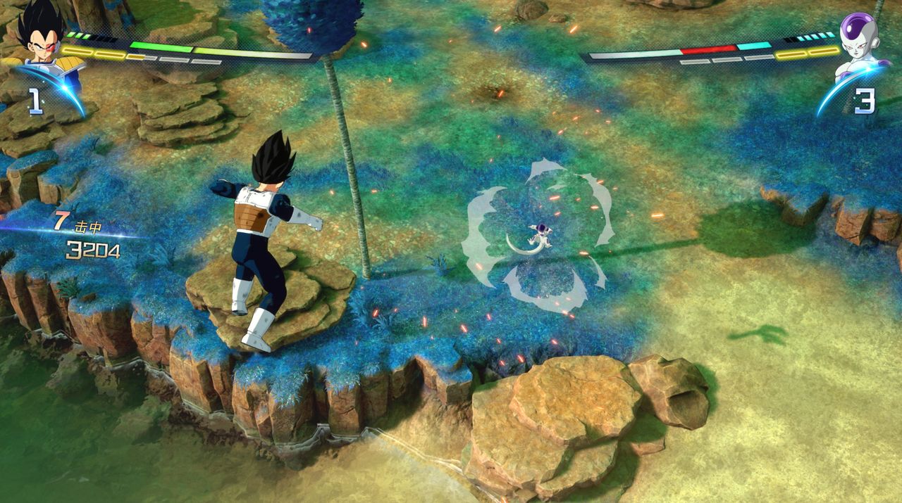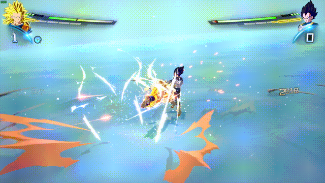 反而我玩贝吉塔的时候,因颇为复杂的派生连招,使我未能在短时间内适应该角色。因此在操控贝吉塔打弗利萨(第一形态)时,我经常被AI摁在地上锤,也常常躲不开弗利萨的死亡激光束,经常被他爆锤。因为AI读玩家的战斗指令非常敏锐,时常会识破你的反击和大招,并变更招式来应对你的攻击。