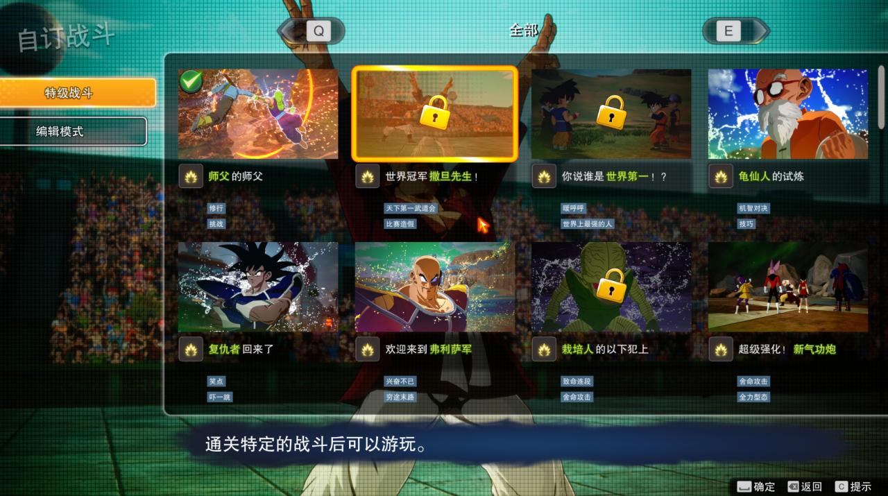 如果你想发挥脑洞,原创制作一些《七龙珠》饭制情节,可以直接去“自订战斗”一栏编辑战斗剧情。