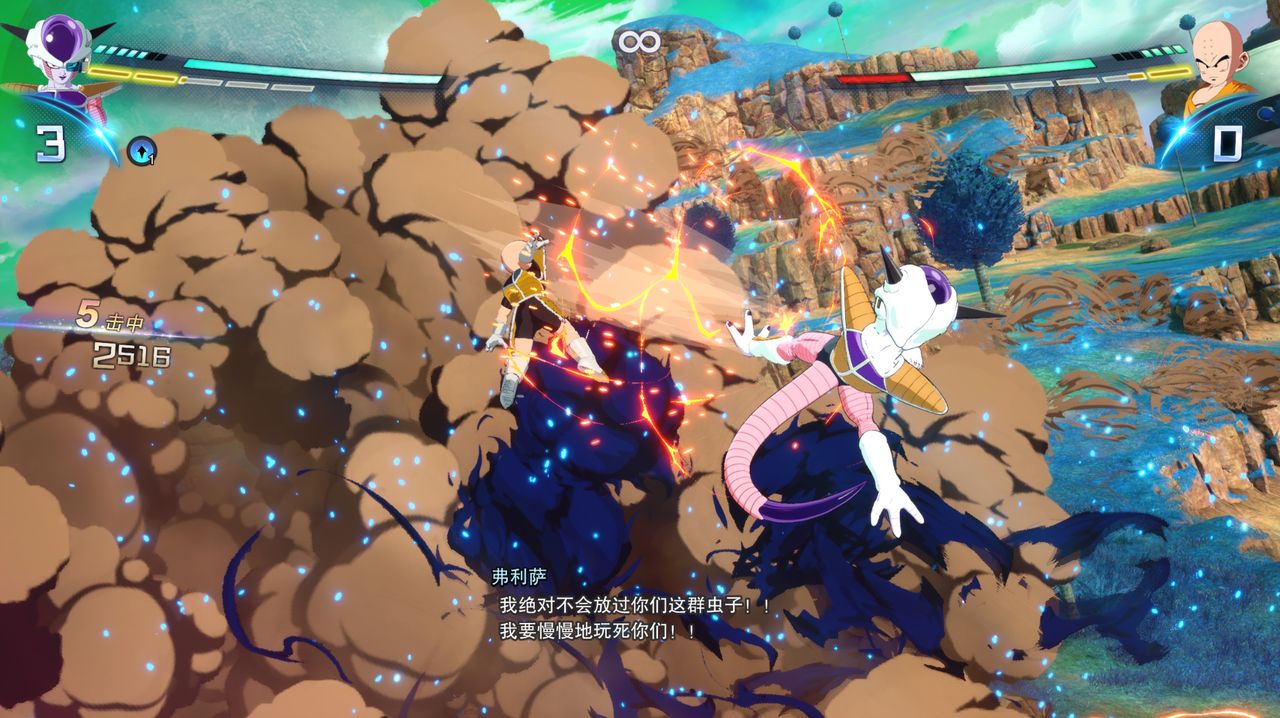 奈何AI强度实在太硬核,加上我是格斗游戏苦手,虽然喜欢格斗,但技术并无太大长进,所以在多数故事模式的战斗中,我通常都是先飞到远远的,然后攒气攒到sparking,疯狂释出大招,就这样直接打持久战,就能将本关卡给打通。