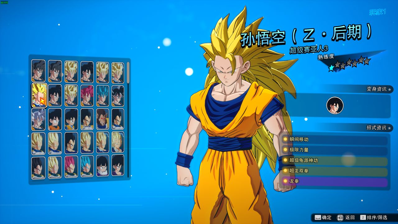 快进到超级赛亚人2形态,招式便进阶到了瞬间移动、发挥全力。绝招则是瞬移+龟派气功,以及超级龟派气功。而到了赛亚人3形态,绝招则变为龙拳。
