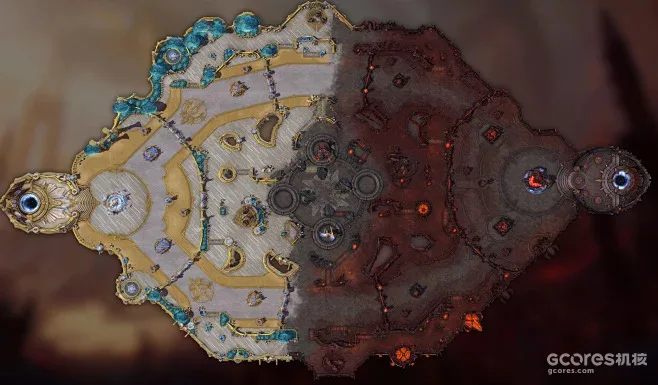 其次是地圖設計,在佔點圖中,雙方到達點內的距離是相同的,即使團隊被團滅,不同於風暴英雄,沒有戰爭迷霧的限制,返場也能比較清晰的知曉敵方的大致位置。