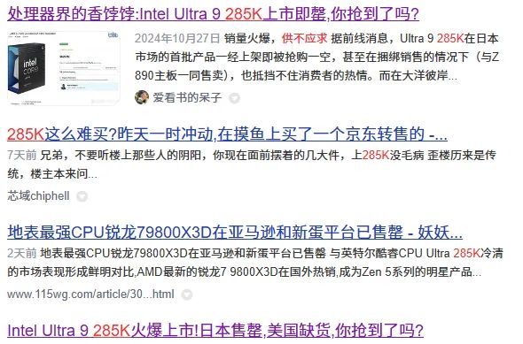 不過令阿紅不解的是,隔壁 intel 的 U9-285K 也短暫出現供不應求,導致價格同樣也有所上漲。