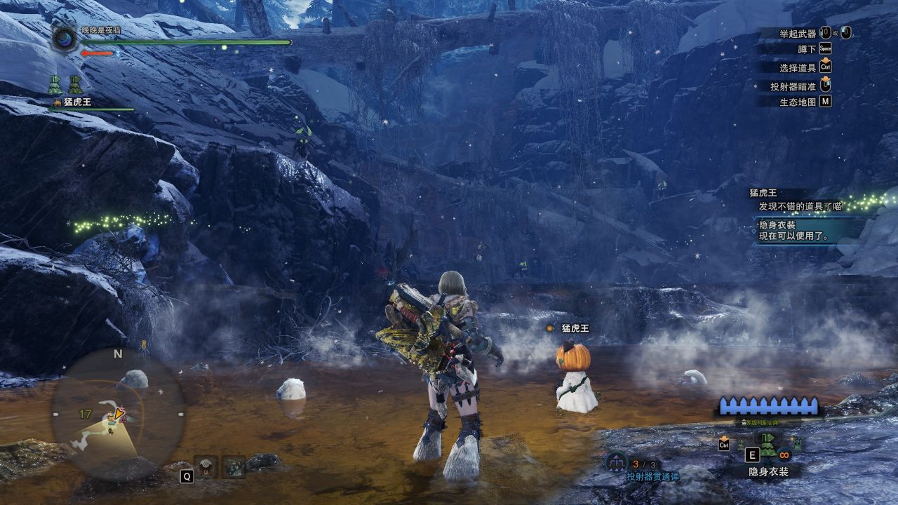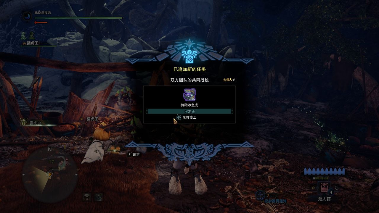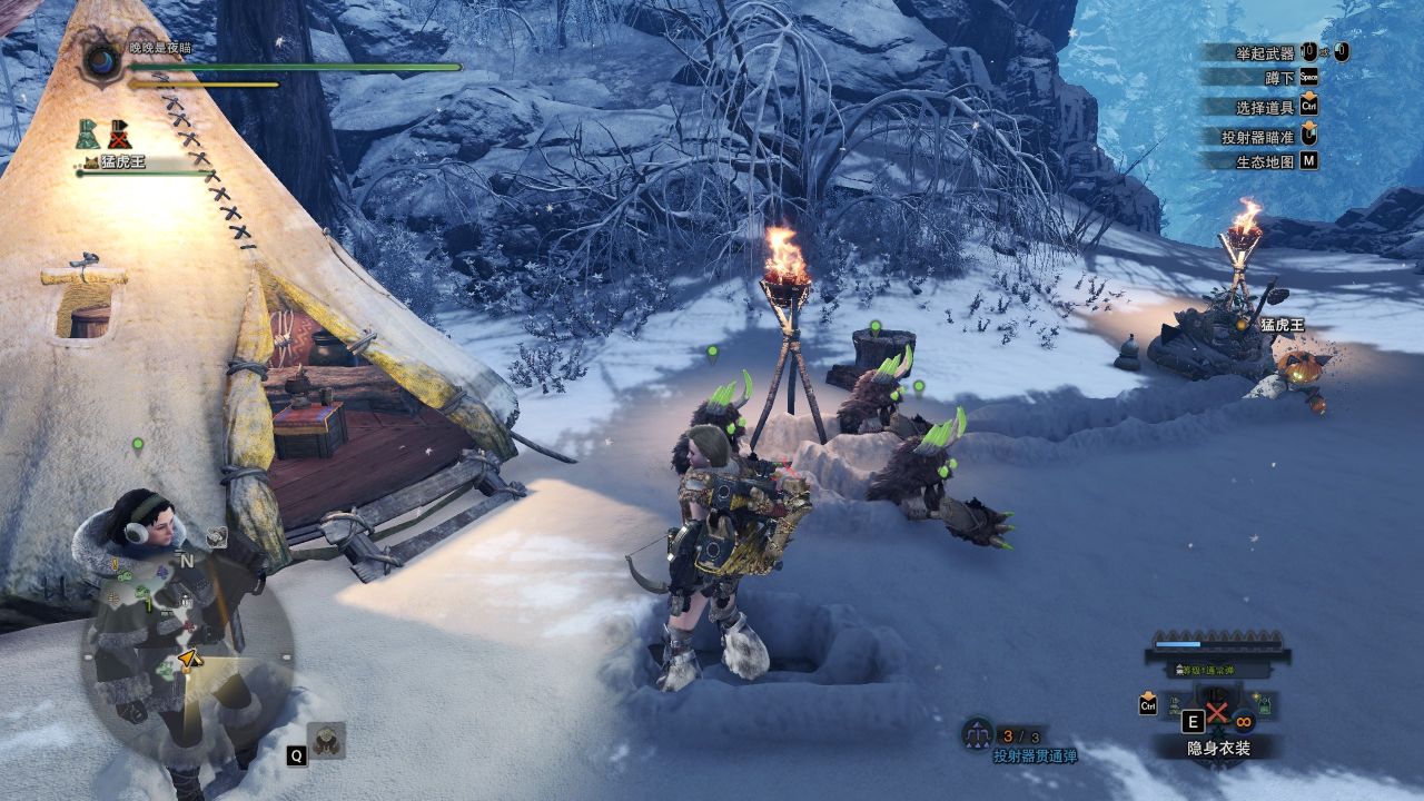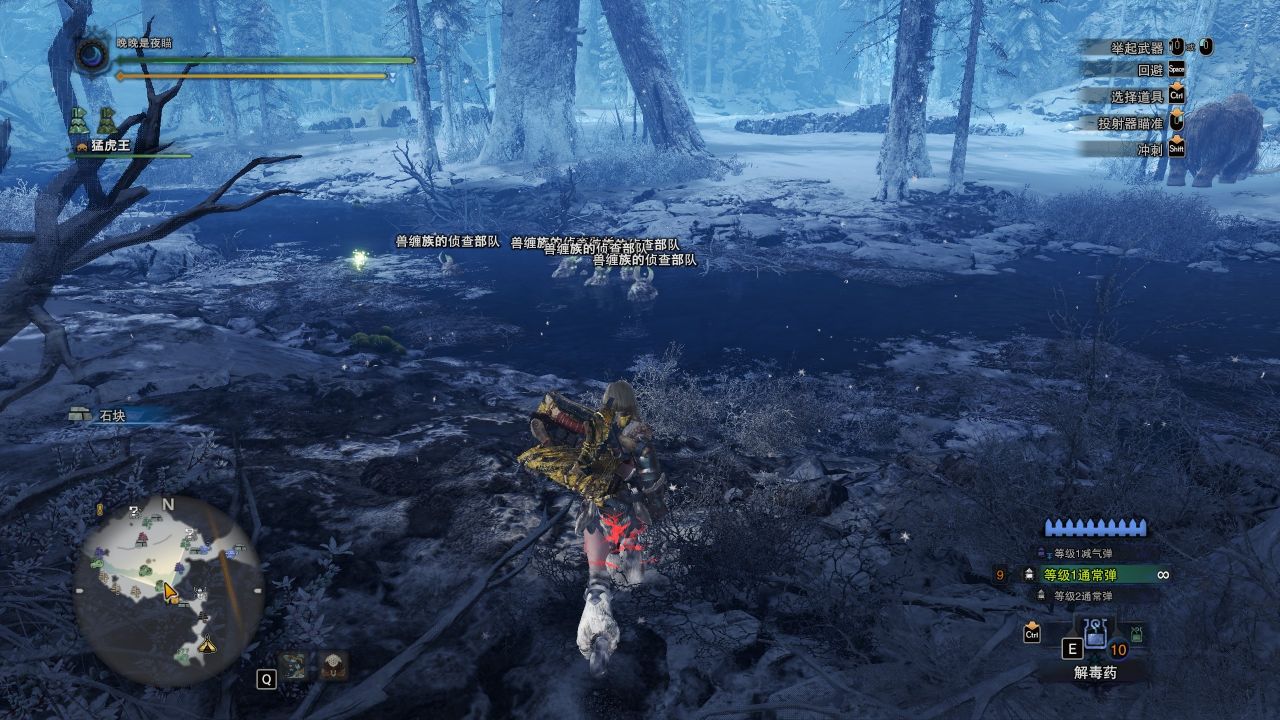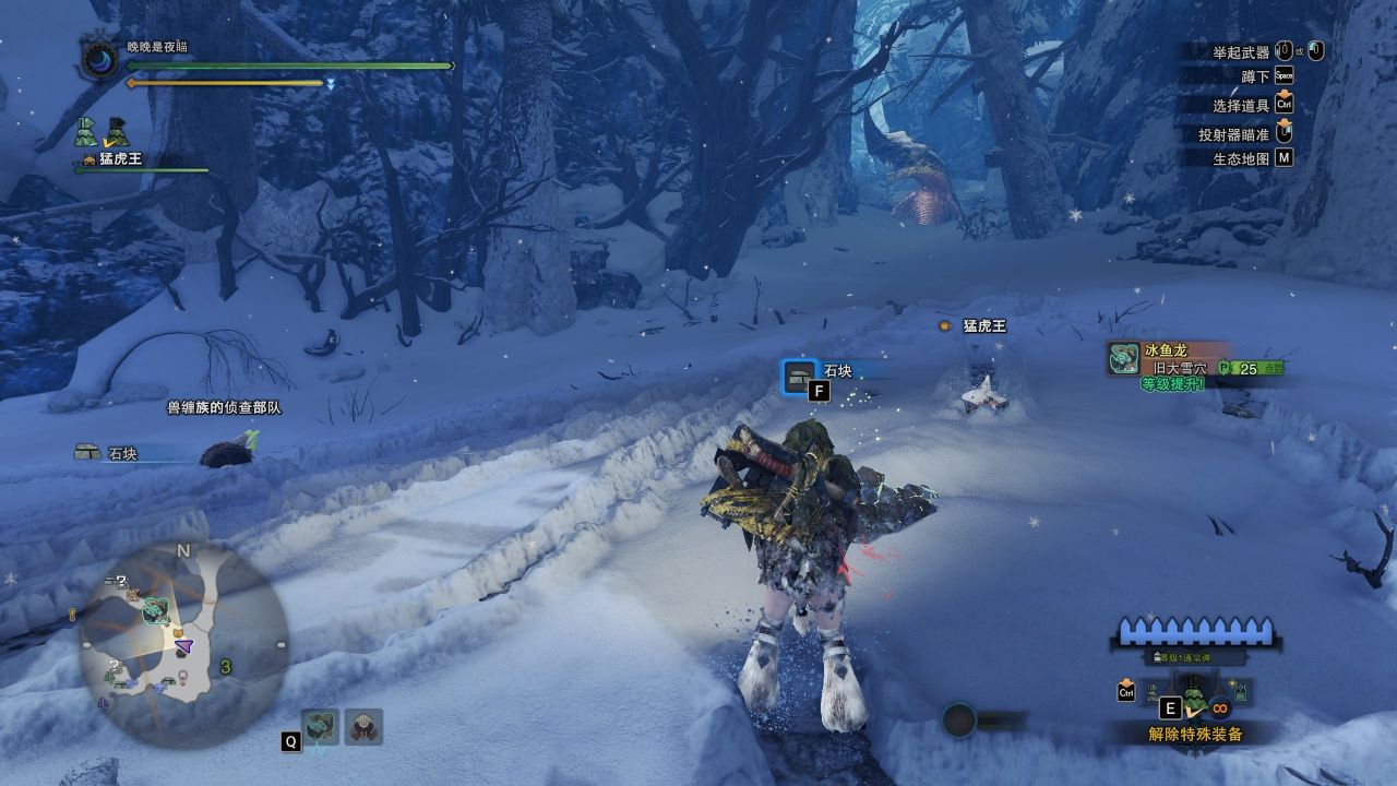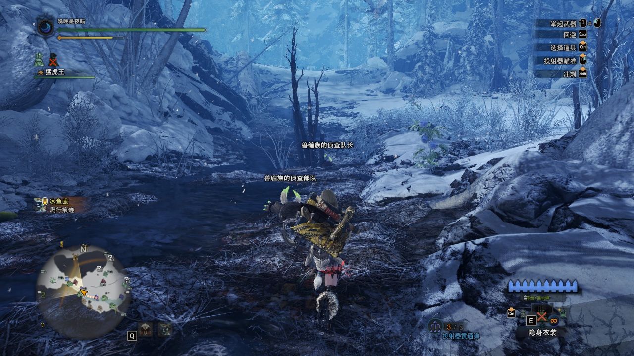 ②去永霜凍土的1號營地,出了營地你會發現有“獸纏族的偵查部隊”在看你。我們需要去狩獵一隻大型怪物,建議去狩獵“冰魚龍”。