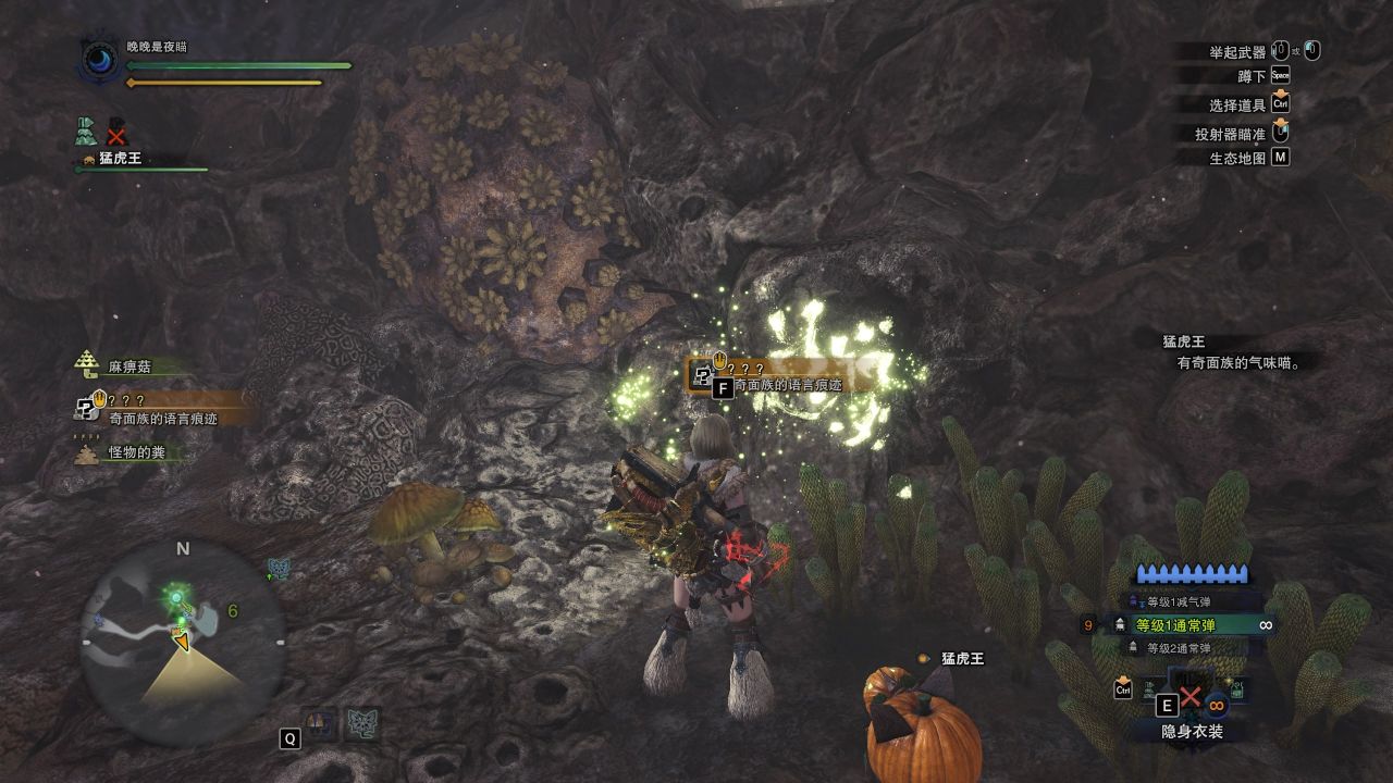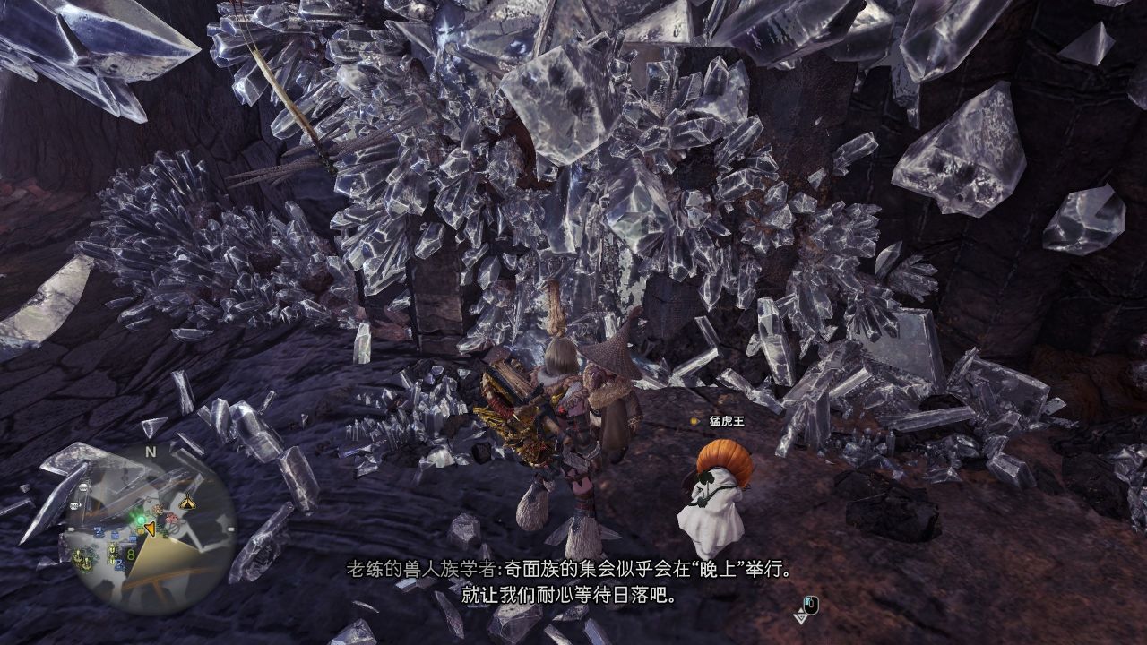 ⑭去龍結晶之地等待夜晚的降臨(帶“隱身衣裝”)8區營地找學者。等待期間可以采采素材。(判斷時間看左上角,太陽是白天,月亮是晚上)