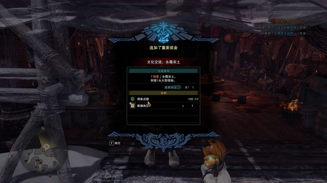 ⑴獲取條件:獲取本體所有隨從裝備,在冰原和學者對話接取狩獵任務