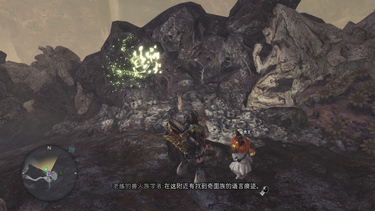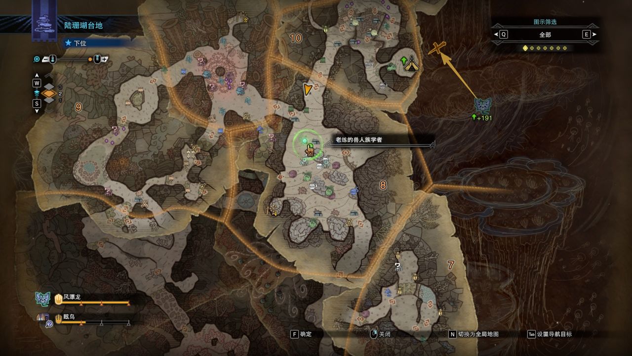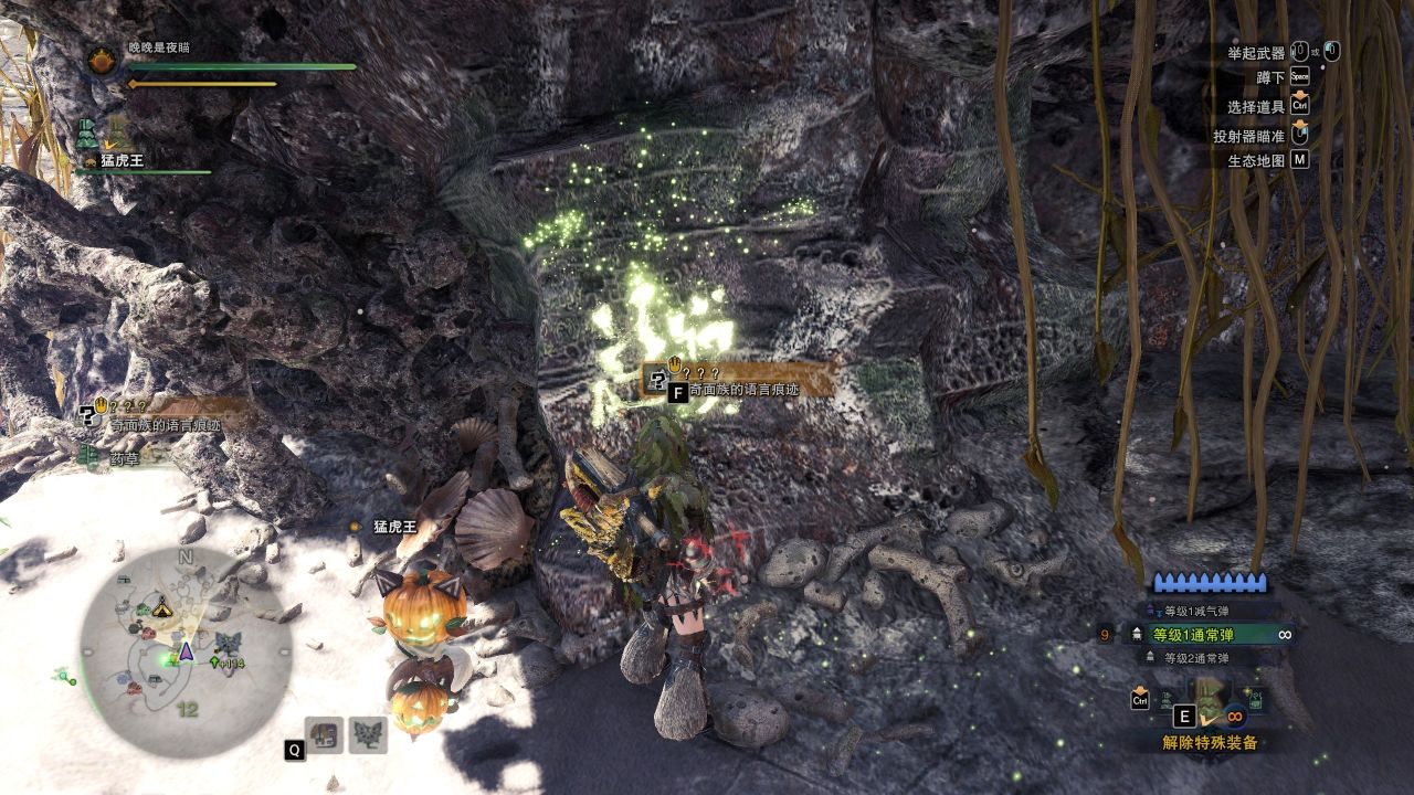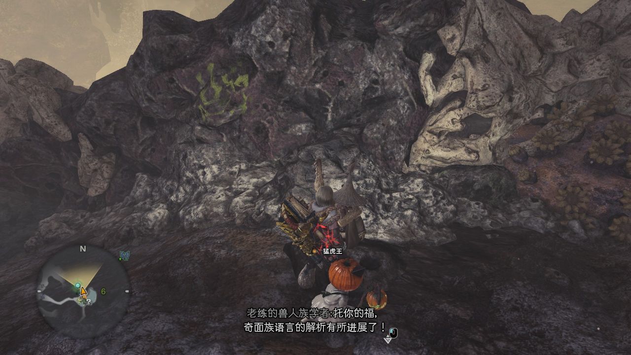 ⑦和學者對完話(直到重複爲止),得知“慘爪龍”外出打獵,你要在這裏等待。可以把周圍的藤蔓都扒開,方便一會跑路。