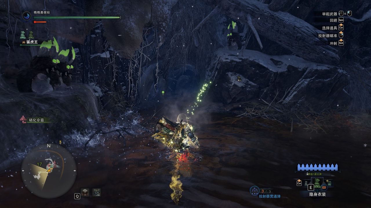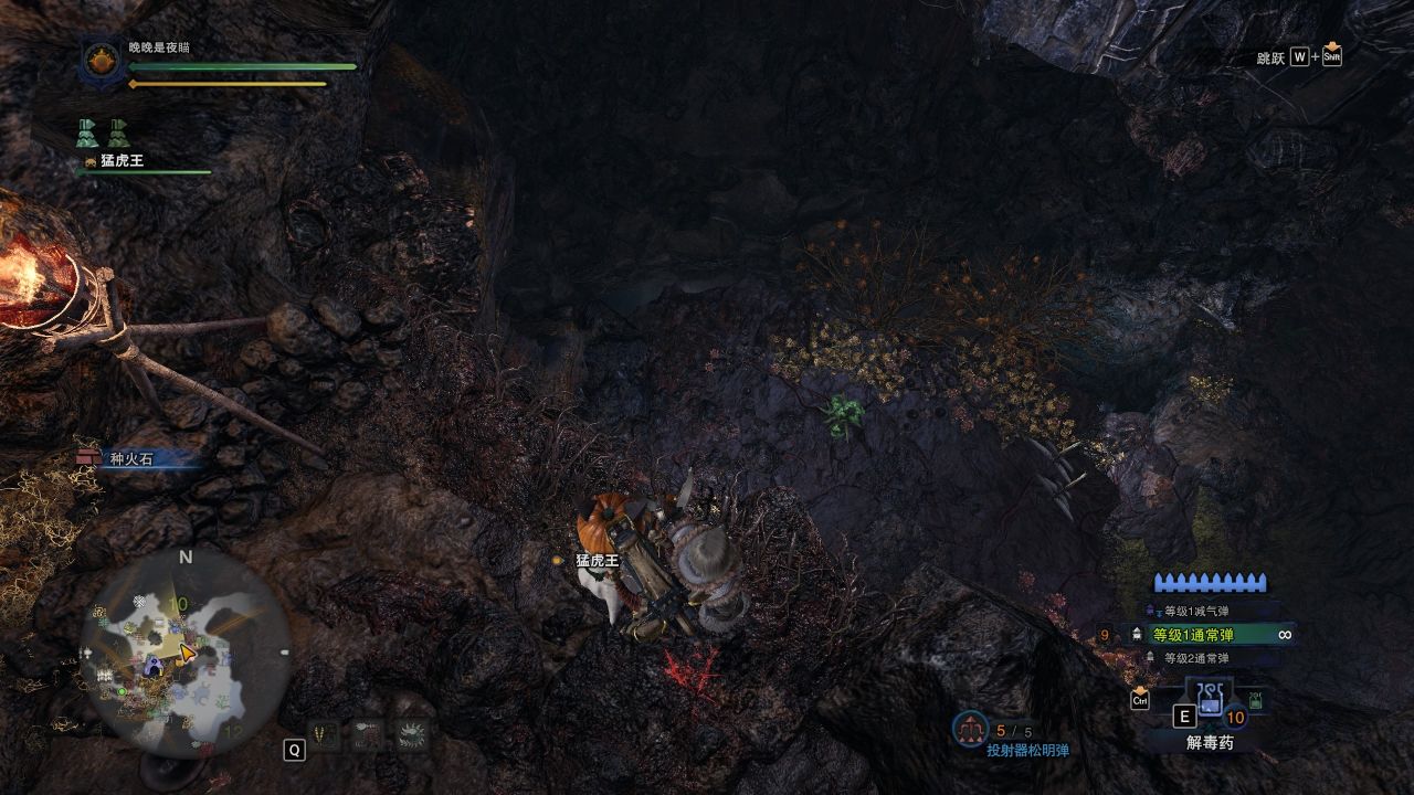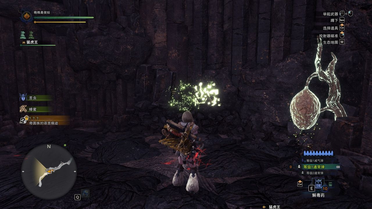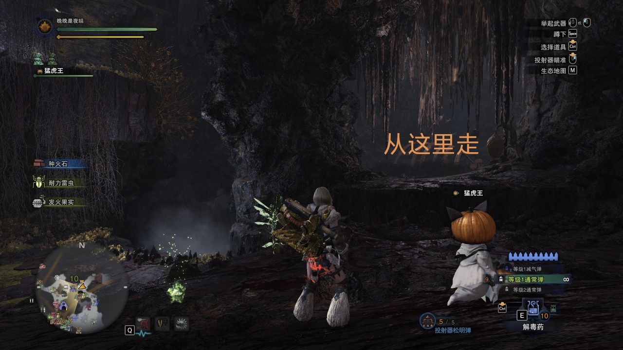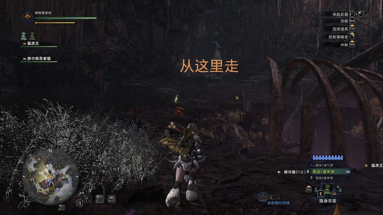 ⑦和學者對完話(直到重複爲止),得知“慘爪龍”外出打獵,你要在這裏等待。可以把周圍的藤蔓都扒開,方便一會跑路。