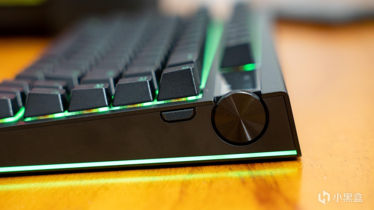 雷蛇黑寡婦蜘蛛V4 無線版專業版兩側的燈帶設計,還支持分區域設置。可以自定義的地方很多,顏值上十分不錯。