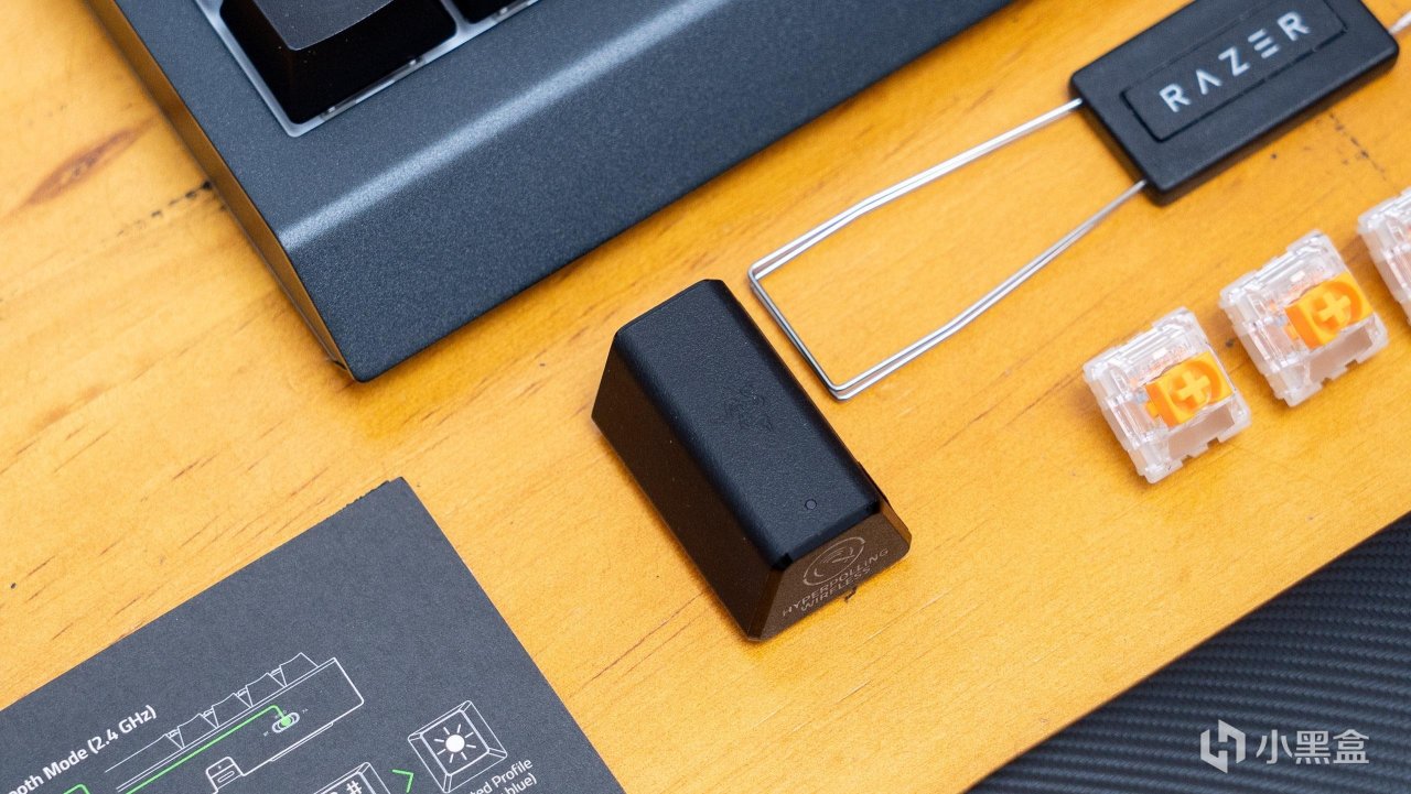 作爲旗艦產品,附件還非常豐富的。提供了二合一的拔鍵器與拔軸器,4000Hz接收器,數據線以及三顆可替換橙軸,磁吸式的碗託設計也拔高了這款鍵盤定位。