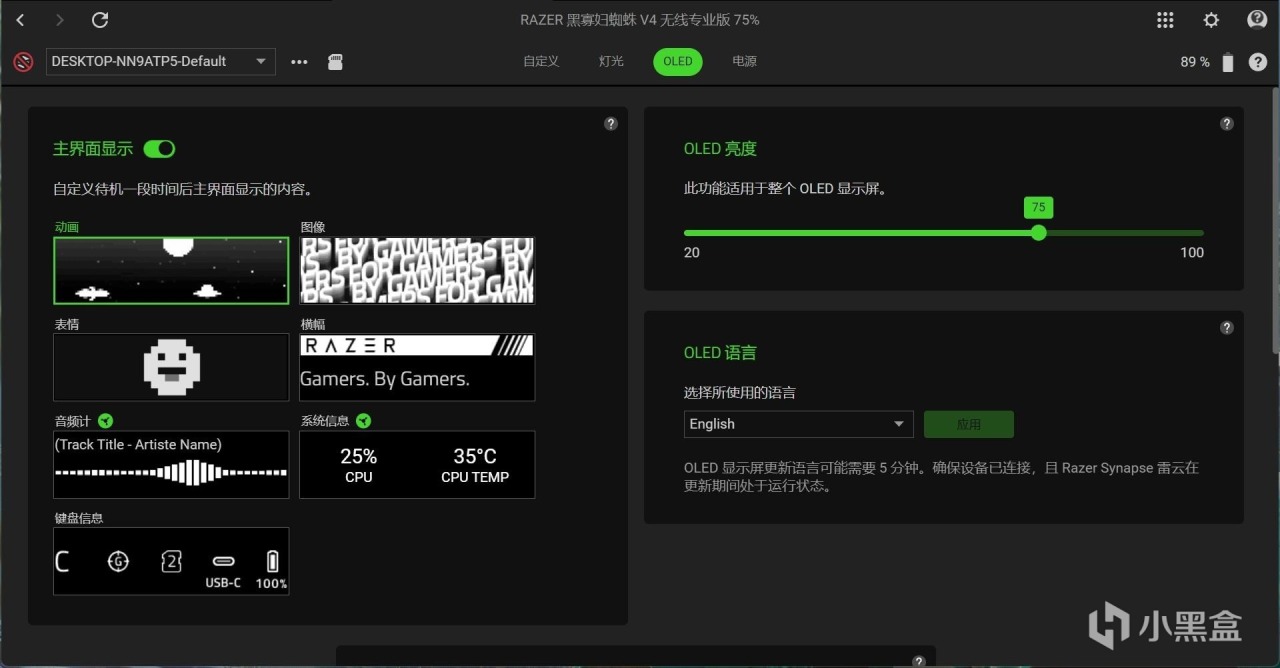 在雷雲軟件中也可以對OLED屏幕進行自定義設置,可以自定義顯示動畫、圖像、表情、橫幅、音頻、系統信息和鍵盤信息。