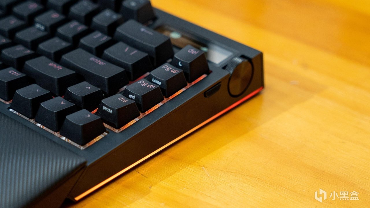 此外換個角度,從側面看去的話又別有一番風味。環狀燈帶設計,可以自定義分區顯示燈光效果,蛛皇的旗艦熟悉拉滿。