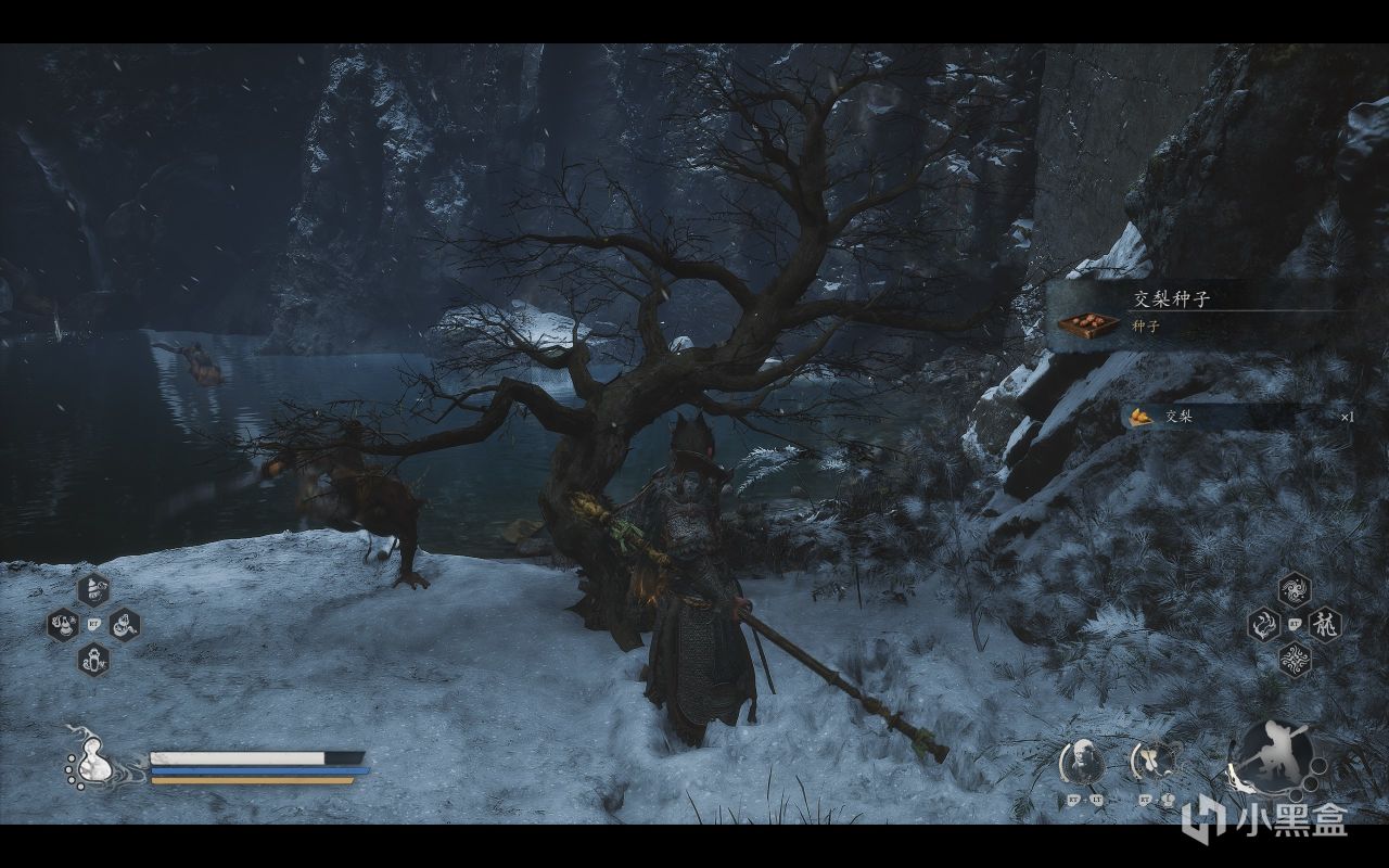 跳下後看到一顆交梨樹,我們換好鱉寶頭骨(如果你有的話),心裏默唸咒語3遍點擊採集。