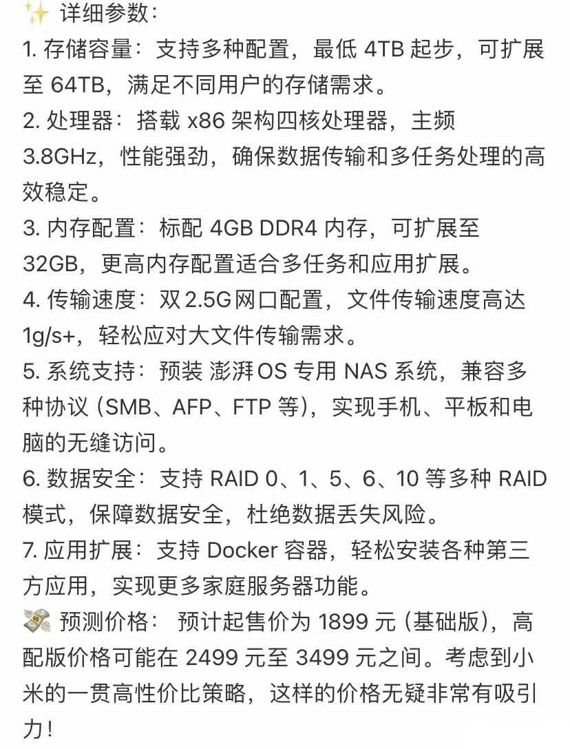 如果爆料屬實,考慮到米家系統的成熟度,小米 NAS 的性價比優勢還是蠻明顯的。