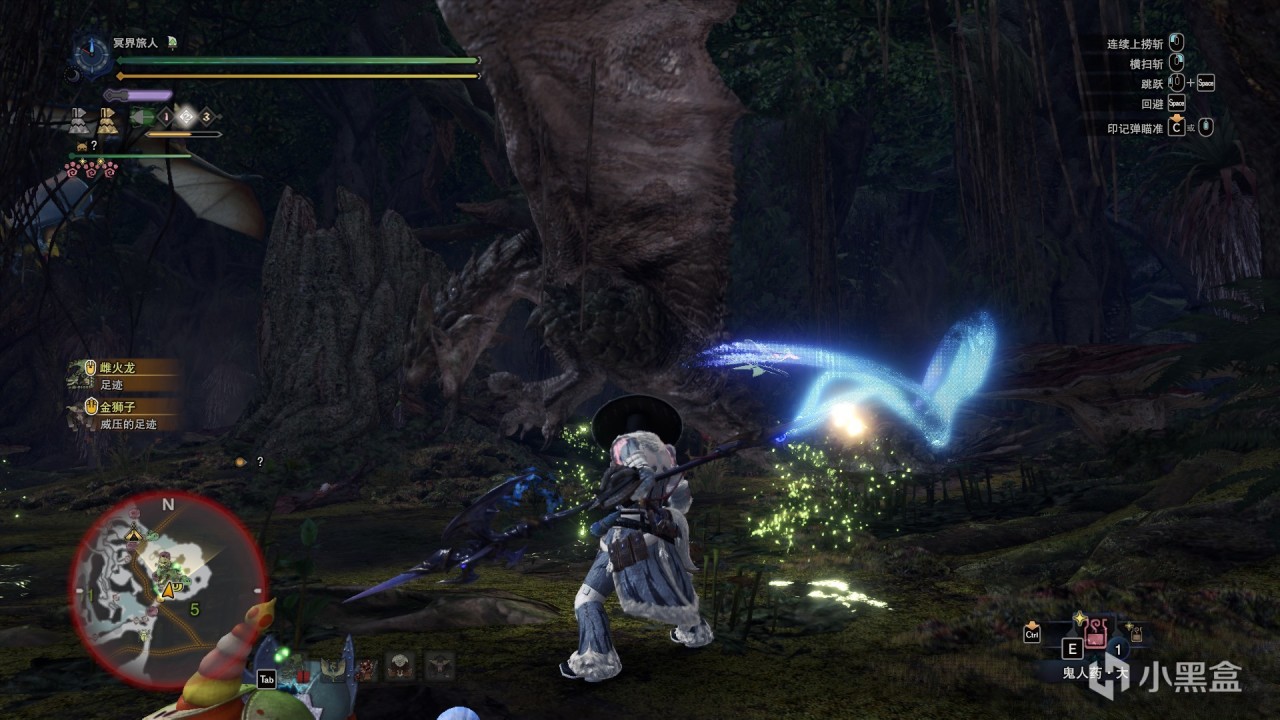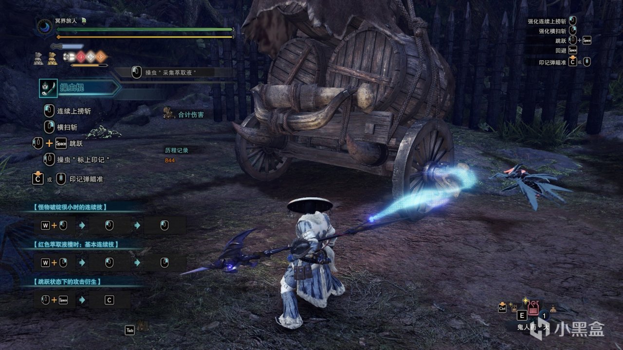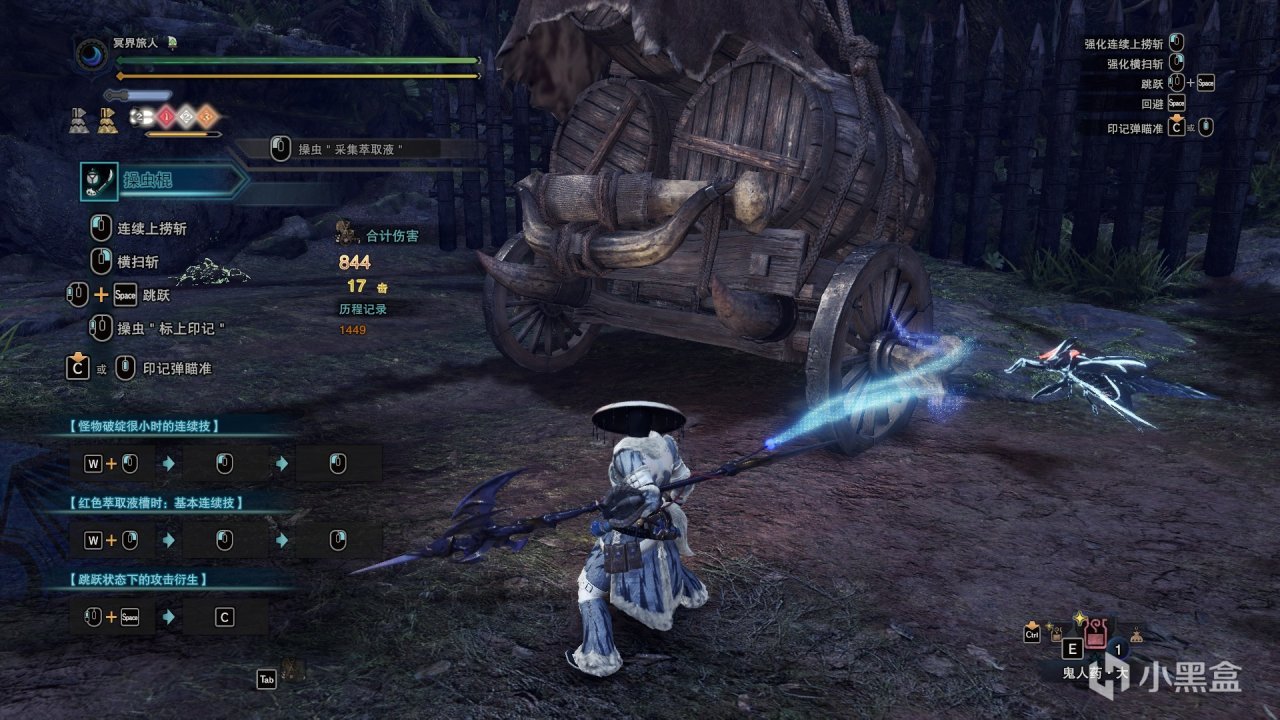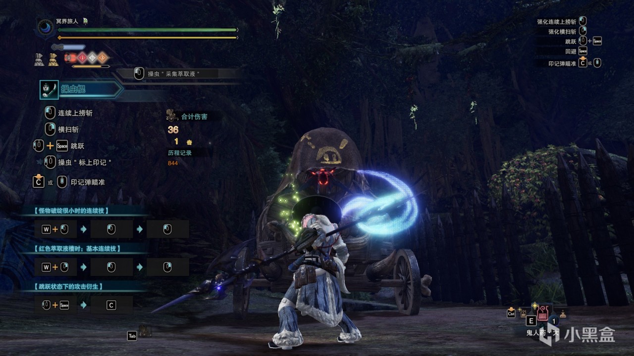 空中按鼠標左鍵:強化跳躍斬[向下轉圈進行攻擊,爲蟲棍積攢騎乘值的主要手段