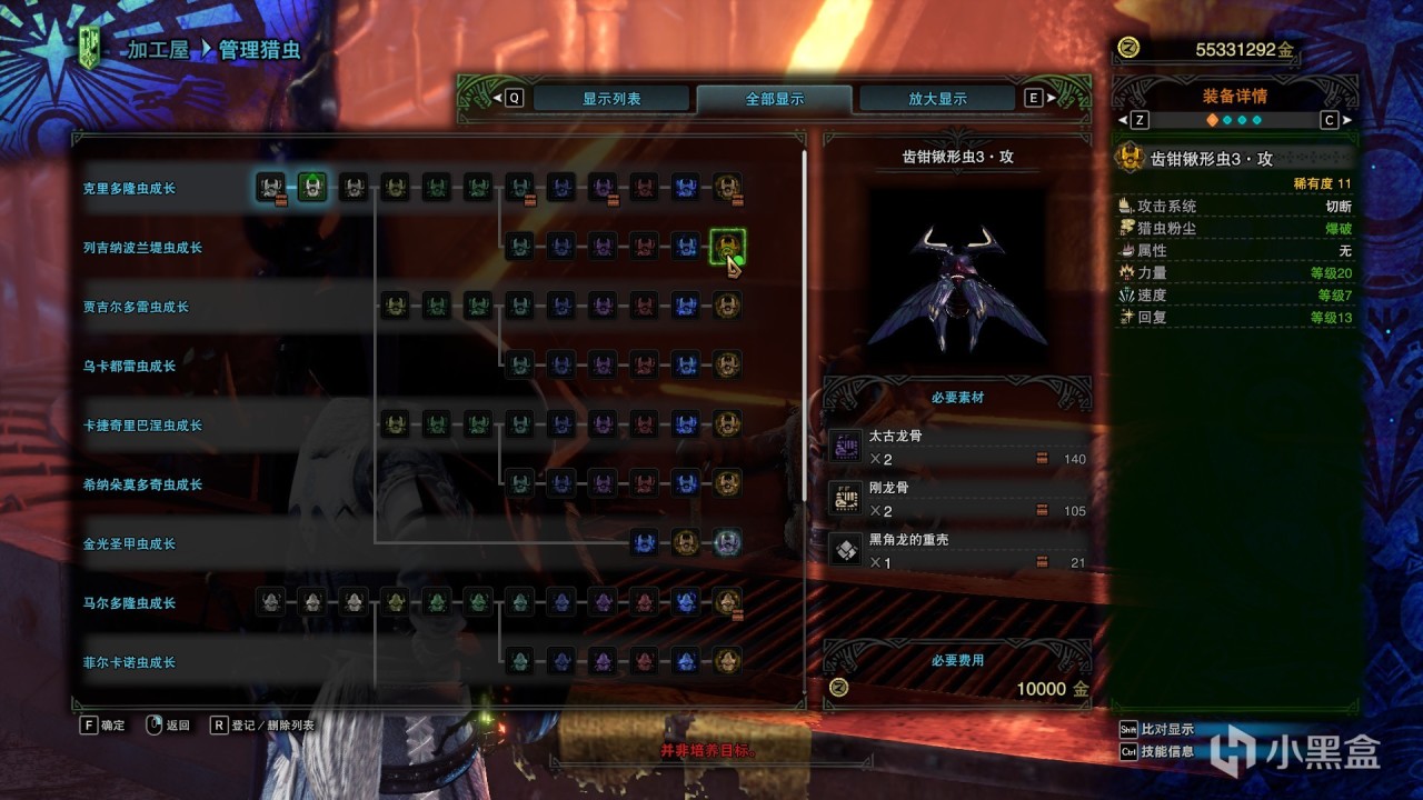 關於蟲子的培養,我們可以在工房的管理獵蟲裏進行獵蟲的購買及培養