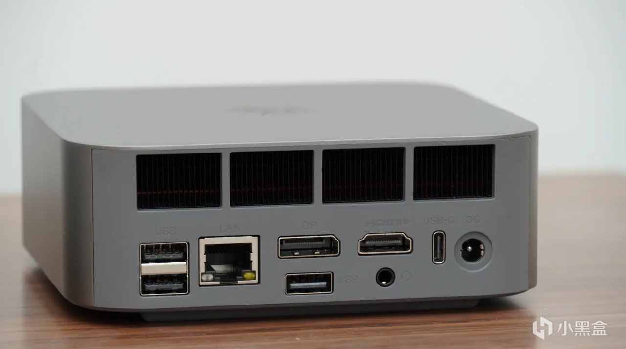 ▲话扯远了,说回本次测试的SER 8,它的正面除了电源按键之外,从左到右分别3.5mm音频接口,USB Type-C 与USB Type-A接口,两个USB接口带宽均为 10Gbps,而那个极为细小的孔洞则为Clear COMS插孔。