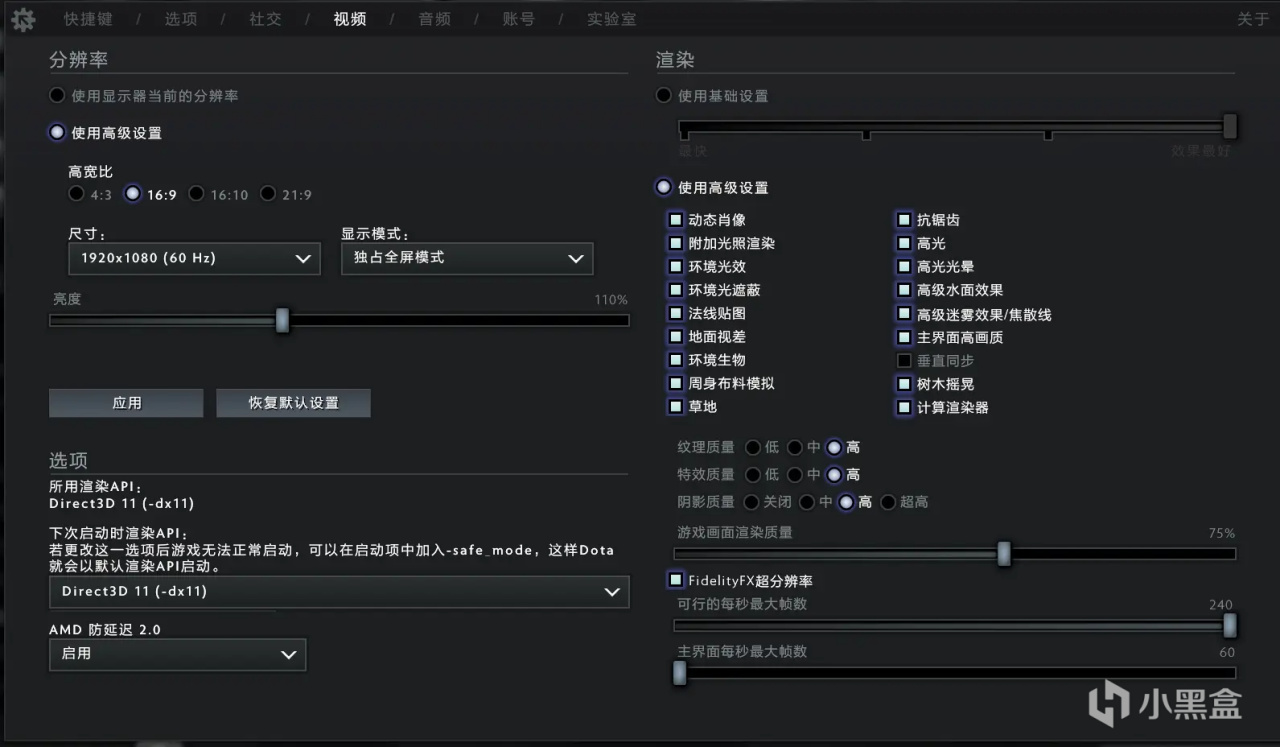 ▲测试分辨率为1080P,FFX 75%,其余设置如上图。