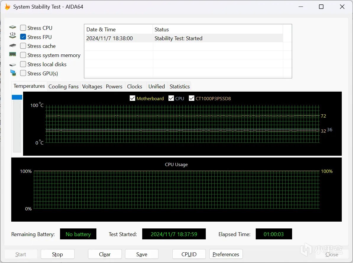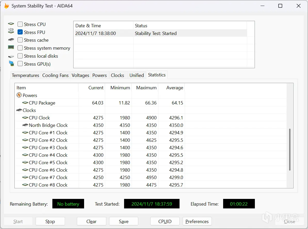 ▲烤机一小时,可以看到CPU稳定在72°C,全核心稳定在4.3GHz,供电也稳定在了64W,可以说表现得超级棒,甚至可以说刷新了我对迷你主机的认知。